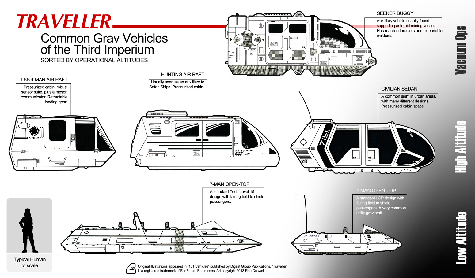 Alrededor de un tercio de los mundos del Tercer Imperio no tienen la infraestructura necesaria para soportar la tecnología grav adecuadamente. Estos mundos, ya sea por elección o por circunstancias, dependen de un conjunto de tecnología inferior para mantenerse. Tecnología que incluye las vías de circulación de los vehículos terrestres, el sistema de distribución de combustible para los motores de combustión interna o externa, los aeropuertos y puertos marítimos, los sistemas de vigilancia y control del tráfico y la infraestructura de mantenimiento de todo ello. Sustituir la infraestructura establecida sería una empresa costosa y que llevaría mucho tiempo, incluso suponiendo que la población aceptara el cambio. No se equivoquen, todos los arquitectos del Espacio Conocido son conscientes de la existencia de los vehículos gravitacionales y de su impacto. Los edificios reflejan la tecnología dominante disponible en el mundo, pero incluso un castillo de piedra en el mundo de más baja tecnología tendrá defensas contra la "alfombra voladora mágica".
